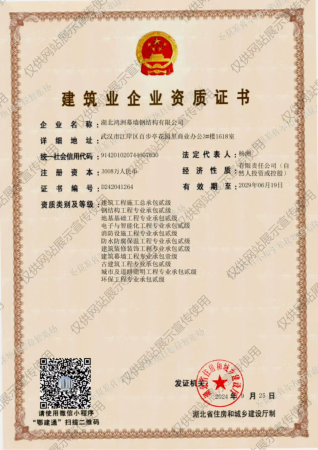 永乐app创立于2013年,注册资金5000万元,是一家集建筑规划、设计、制造、施工、投资于一体的综合型企业。总部位于武汉,在全国设有十多家公司及分公司、办事处,拥有配套的制造产业基地。业务领域涉及建筑施工、智能制造、设计服务、环保科技等领域。其中集团旗下湖北鸿洲幕墙钢结构有公司及巴河建工集团有限公司同时具备建筑工程施工总承包壹级、幕墙工程专业承包壹级、建筑装修装饰工程专业承包壹级、市政工程、机电工程、水利工程等共计二十多项专业总承包及专业分包资质和设计资质,并已通过ISO国际质量标准体系认证及环境与职业健康安全体系认证。公司自成立以来,始终秉承“质量为本,诚信立业”的经营理念,致力于为客户提供高品质、高效率的服务。永乐app承接了大量具有影响力的工程项目,涵盖了商业综合体、住宅小区、公共设施、市政工程、旧城改造、水利工程、农田治理等多个领域,积累了丰富的施工经验和专业技术。同时,公司注重技术创新和研发投入,不断提升自身的技术实力和市场竞争力。公司在武汉长江新区建立50亩钢结构产业基地以及在孝感市临空华港智造产业新城建立45亩智慧化产业基地,并引进先进的生产设备和技术,建立了完善的生产管理体系,实现了产品的标准化、系列化和规模化生产,不仅提高了生产效率,还确保了产品质量的稳定性和可靠性。通过优化生产流程,公司能够更快地响应市场需求,为客户提供更加及时、高效的服务。鸿洲建设集团将坚持不懈地提供顶尖的设计、精湛的生产技术、专业的团队管理以及严格的质量控制,始终遵循质量为先、客户至上的原则,以诚信为核心价值观,致力于服务社会,不断努力成为国内顶尖的建筑企业,续写辉煌的篇章。